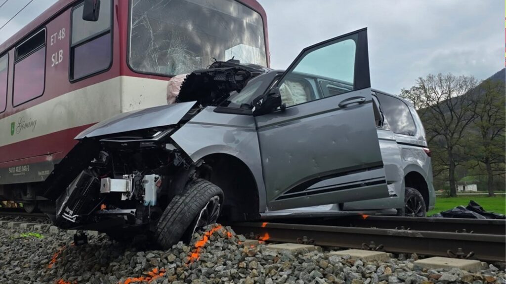 Auto stößt an Bahnübergang mit Regionalzug zusammen