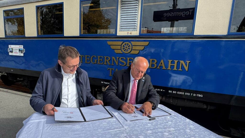 Am Bahnhof Tegernsee fand am Vormittag die symbolische Vertragsunterzeichnung statt. Vor Ort waren unter anderem Michael Bourjau, Geschäftsführer der Tegernsee-Bahn, und Philipp Nagl, Vorstand der DB InfraGo.