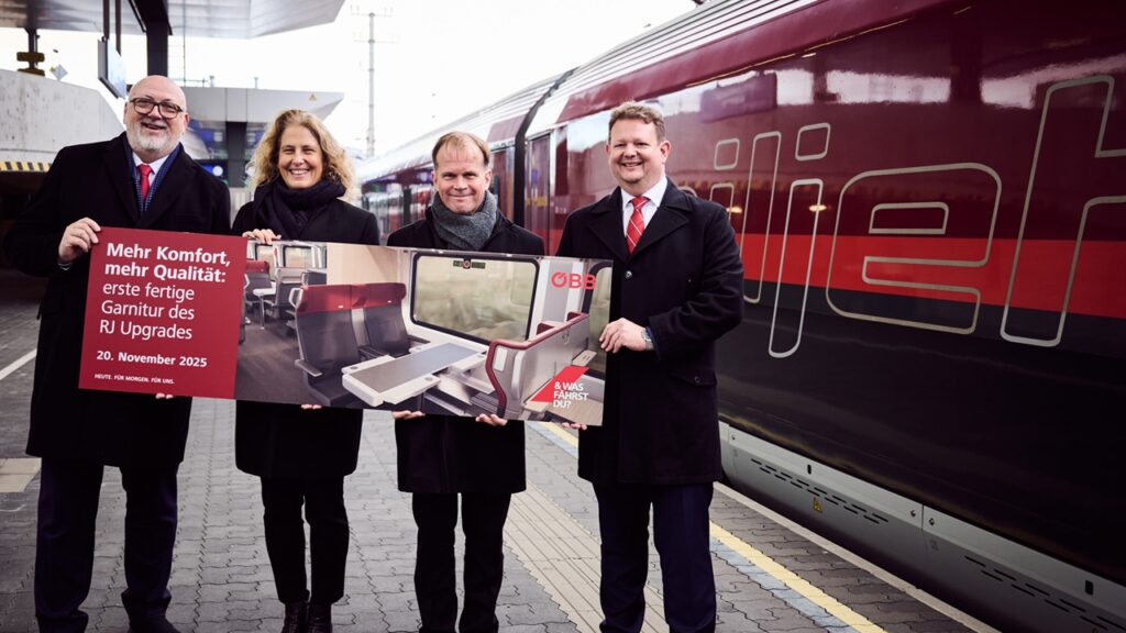Den Auftakt macht die erste vollständig modernisierte Garnitur, die am 12. Dezember im Rahmen der Koralmbahn-Eröffnung als Koralmjet“ präsentiert wird. Ab dem Fahrplanwechsel am 14. Dezember wird sie zwischen Wien und Lienz verkehren. In Wien ist an diesem Donnerstag der erste modernisierte Railjet vorgestellt worden.