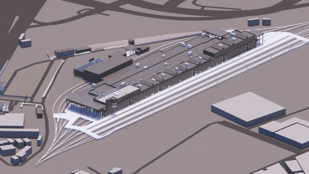Die neue, fast 5.600 Quadratmeter umfassende Anlage beinhaltet zwei Wartungsbuchten, Inspektionsgruben, Betankungsflächen und eine modernisierte zweigleisige Servicehalle. Außerdem werden neue Abstellgleise, Oberleitungsanlagen, Versorgungsleitungen und ein Bürobereich für den Rangierbetrieb errichtet.