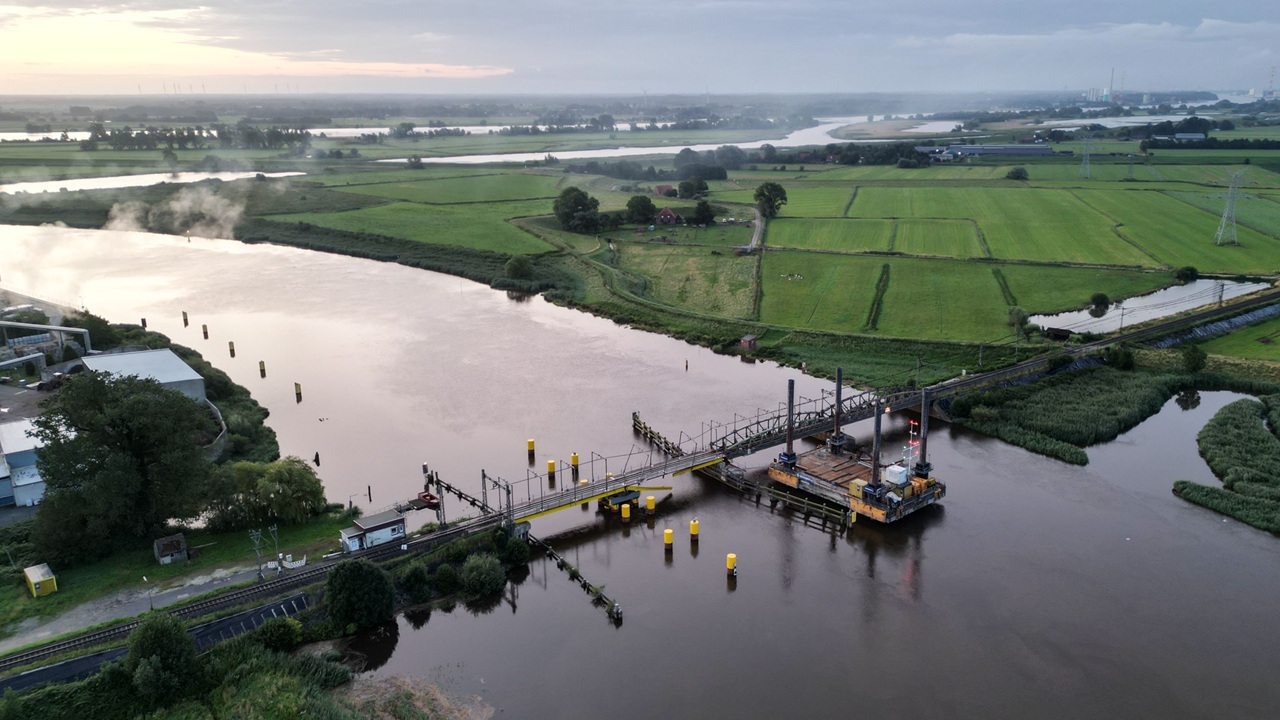 Die Hilfsbrücke ist laut Bahn eine Übergangslösung. Geplant sei ein Neubau in Form einer Hub-Drehbrücke, die die uneingeschränkte Befahrbarkeit der Hunte und die Anbindung an den Oldenburger Hafen für Binnen- und Seeschiffe schnellstmöglich wieder herstellen soll.