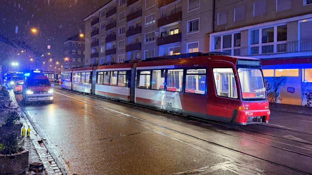 Eine entgleiste Straßenbahn sei von den Einsatzkräften wieder aufs Gleis gezogen worden. Den entstandenen Schaden konnte die Polizei bislang nicht beziffern. Weitere Details gab es vorerst nicht.