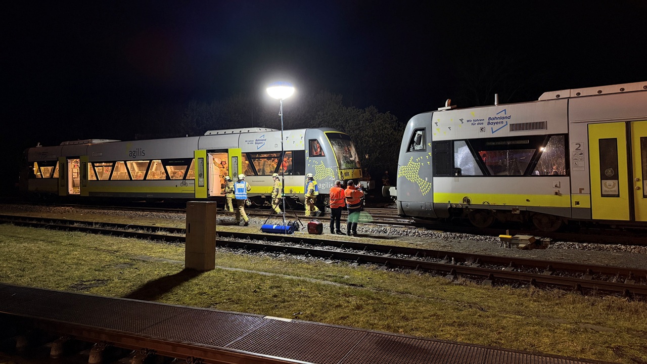 Nach bisherigen Erkenntnissen waren am Mittwochabend gegen 18.45 Uhr zwei Agilis-Züge zusammengestoßen. Eine Bahn mit 13 Fahrgästen an Bord fuhr demnach in den Bahnhof ein, der zweite Zug war ohne Fahrgäste auf einer Rangierfahrt zum Betanken unterwegs. Die Ermittlungen zur Unfallursache begannen noch am Mittwochabend.