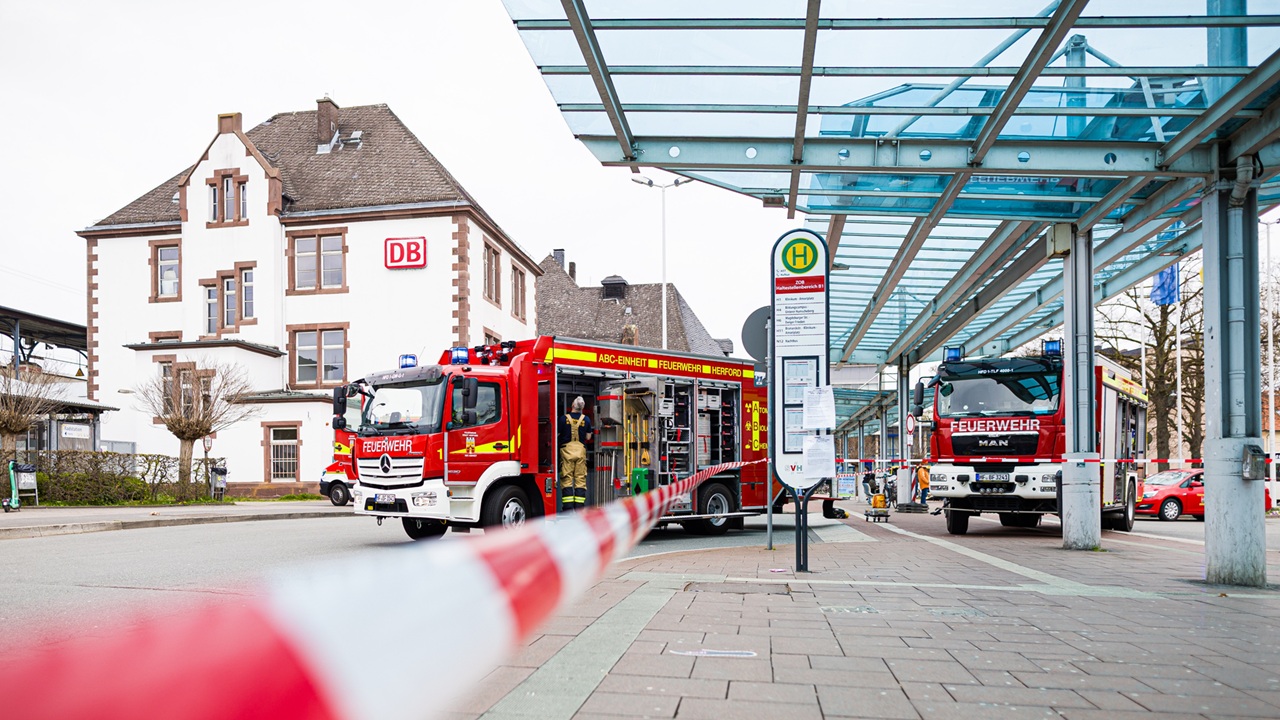 Aus einem Kesselwagen am Bahnhof Herford tritt Schwefelsäure aus. Fahrgäste müssen den Bereich verlassen. Ein Großeinsatz läuft – mit erheblichen Folgen für den Bahnverkehr