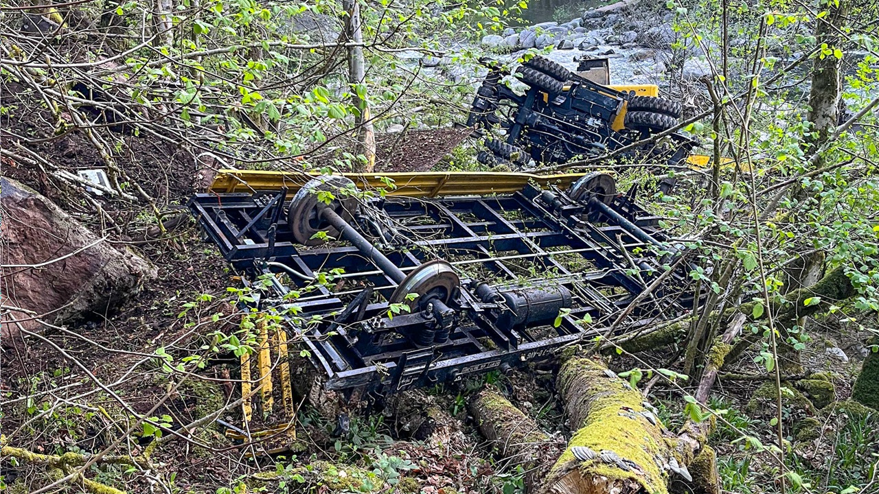 Ein Baggerfahrer ist nachts mit Arbeiten an einer Bahnstrecke im Schwarzwald beschäftigt. Dann stürzt der Bagger ab, überschlägt sich und landet in einem Fluss. Mit schweren Folgen für den Fahrer.