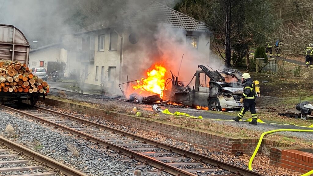 Hochwertiges Wohnmobil brennt neben alter Bahnstrecke aus