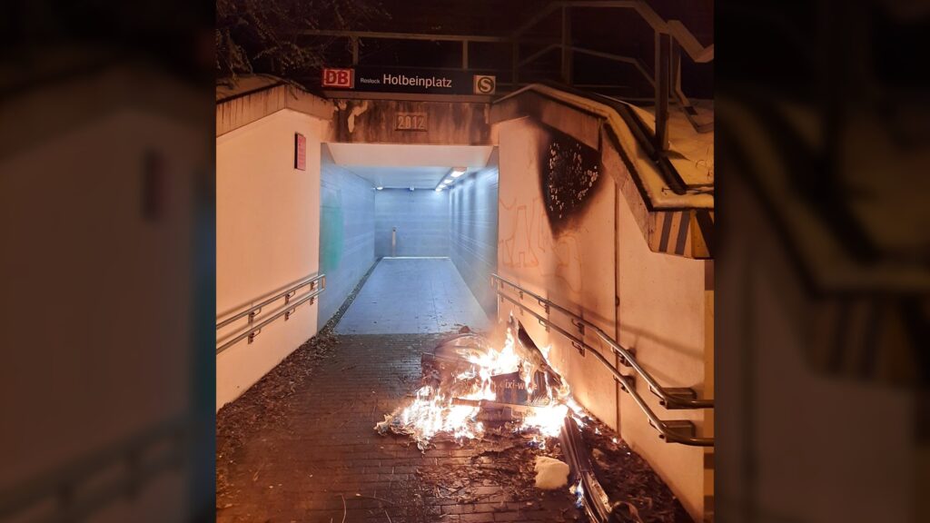 ROSTOCK | In der Nacht auf Freitag (8. Dezember) ist am S-Bahn-Haltepunkt Rostock-Holbeinplatz eine Mobiltoilette vollkommen ausgebrannt.