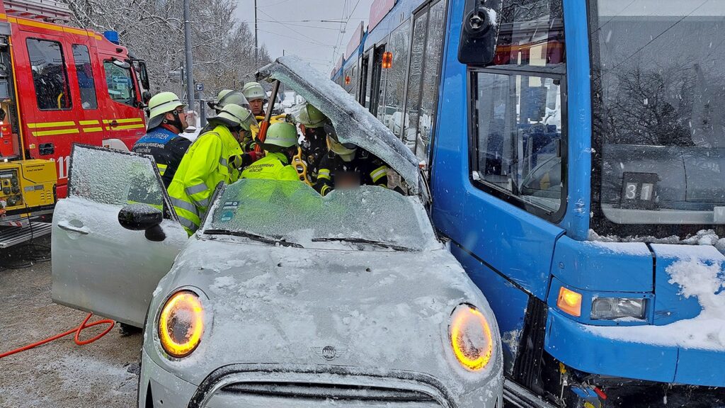 MÜNCHEN | Bei der Kollision zwischen einem Pkw und einer Trambahn sind am Samstagvormittag zwei Personen teils schwer verletzt worden.