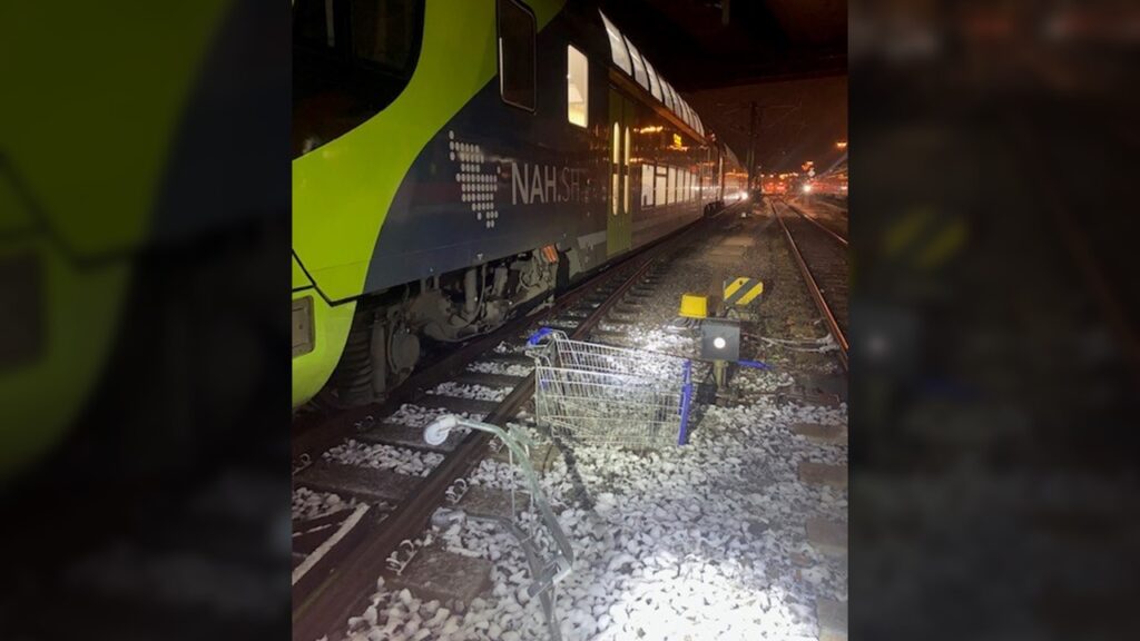 Unbekannte werfen Einkaufswagen vor heranfahrenden Zug