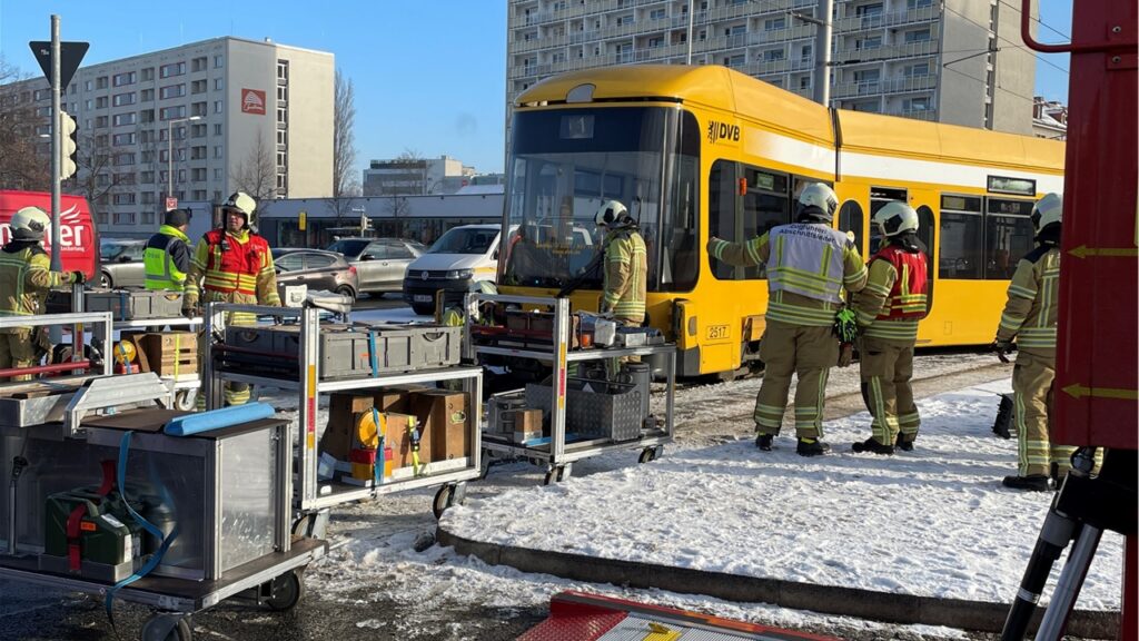 Straßenbahn in Dresden entgleist – Feuerwehr unterstützt Aufgleisarbeiten