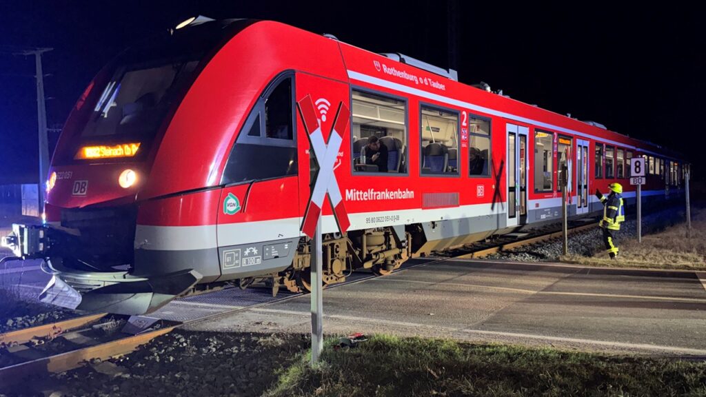 Bei einem Unfall an einem Bahnübergang im mittelfränkischen Landkreis Ansbach sind ein Auto und ein Regionalzug zusammengestoßen. Schwerverletzte gab es…