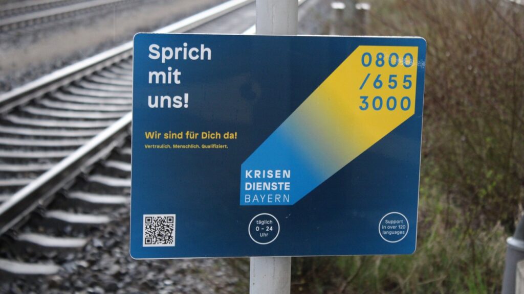 In Bayern weisen Schilder in Gleisnähe auf Hilfsangebote für Menschen in Krisensituationen hin. Der Krisendienst ist rund um die Uhr…