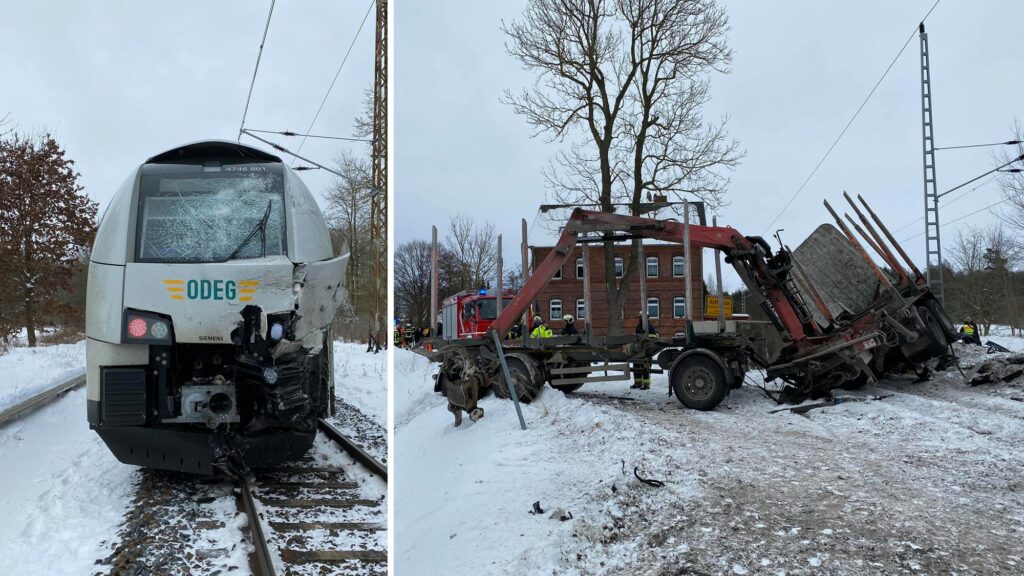 Lokomotive und Lastwagen kollidieren an Bahnübergang nahe Ganzlin