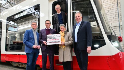 Mit der Inbetriebnahmegenehmigung für die erste „kurze TINA“ startet in Halle (Saale) die Einführung einer neuen Straßenbahngeneration. Insgesamt 56 Niederflurfahrzeuge von Stadler sollen schrittweise in den Fahrgastbetrieb gehen.