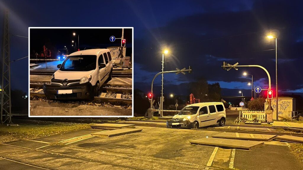Autofahrer fährt sich auf gesperrtem Bahnübergang fest