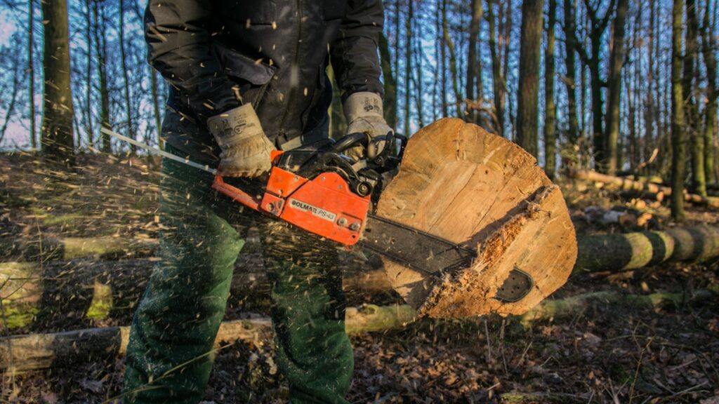 Mit einer Motorsäge fällen Unbekannte einen Baum neben einem Gleis. Der Baum fällt um – und blockiert die Bahnstrecke.