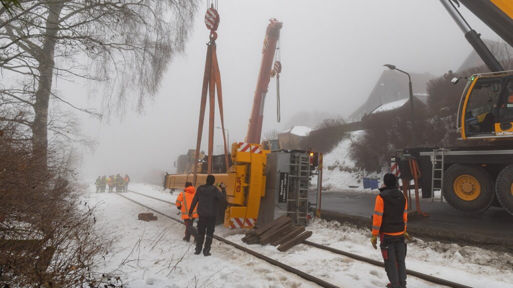 Ein Kran stürzt in Lauscha auf die Gleise – der Bahnverkehr steht daraufhin still. Was ist bislang über den Unfall…