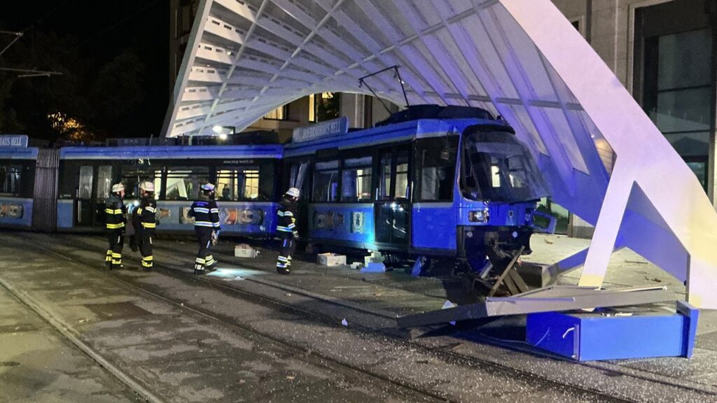 ▶ VIDEO: Trambahn entgleist und prallt in Haltestelle