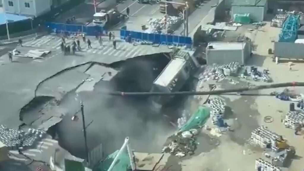 Mitten am Tag bricht in Shanghai der Asphalt über einem U-Bahn-Tunnel in sich zusammen. Videos zeigen das Ausmaß des Vorfalls.…